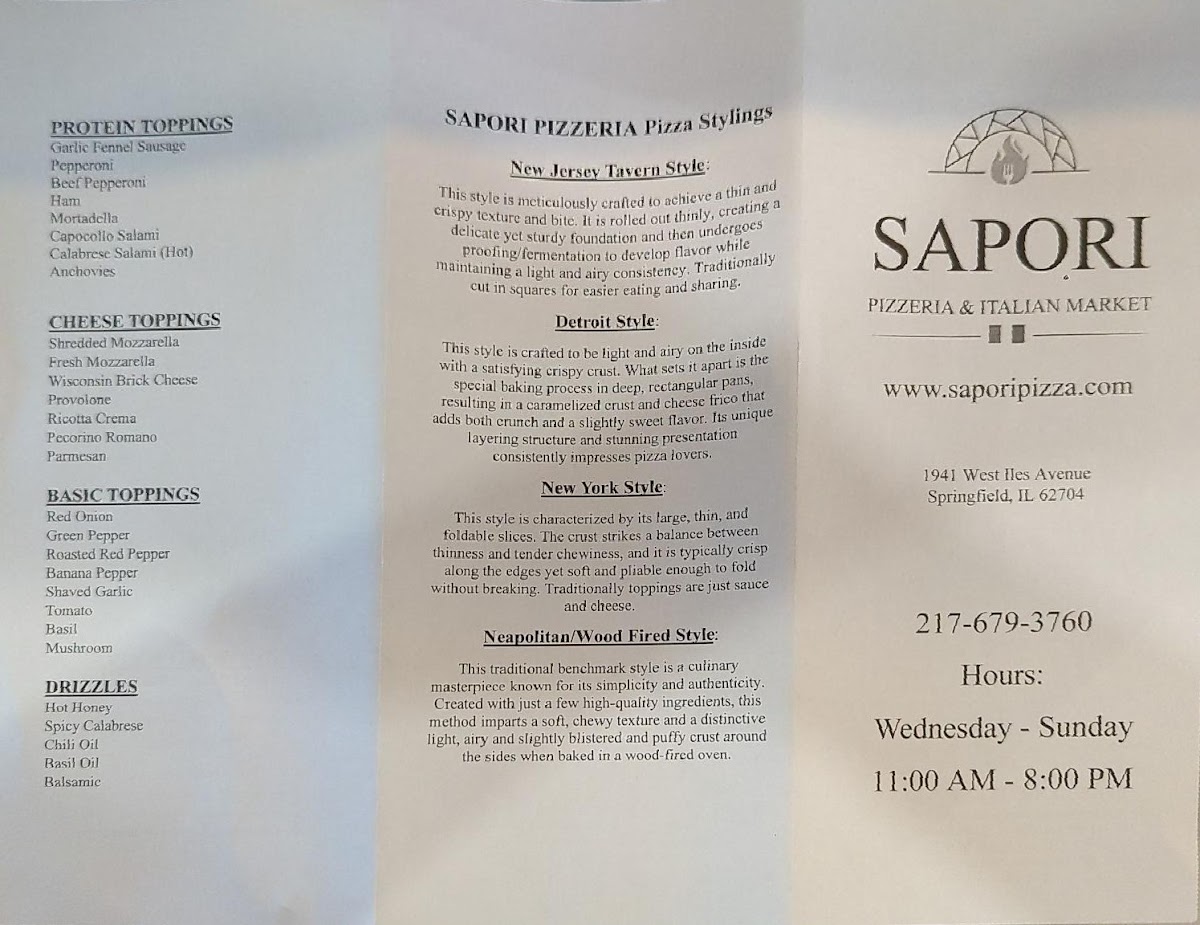 Welcome to Sapori Pizzeria & Italian Market, an inviting little gem located at 1941 W Iles Ave, Springfield, IL. This establishment celebrates the essence of authentic Italian cuisine, combining a casual dining experience with a bustling market ambiance. Their menu boasts a variety of mouth-watering pizzas, including classic New York slices and wood-fired Neapolitan options.